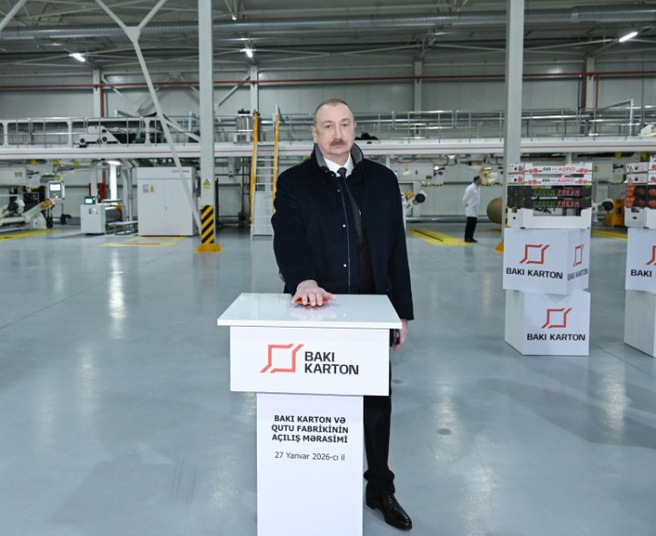 Prezident İlham Əliyev yanvarın 27-də Sumqayıt Sənaye Parkında “Bakı Karton və Qutu Fabriki” MMC-nin karton və qutu taralarının istehsalı müəssisəsinin açılışında iştirak edib.