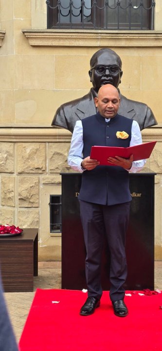Səfir Abhay Kumar səfirliyin ərazisində yerləşən B. R. Ambedkarın heykəlinin önünə gül dəstələri qoydu. Çıxışında o, səfirliyin binasında Dr. Ambedkarın heykəlinin olmasının həm Hindistan, həm də Azərbaycan üçün qürurverici olduğunu vurğuladı. O, həmçinin Dr. Ambedkarın Hindistan Konstitusiyasının hazırlanmasına verdiyi möhtəşəm töhfələri vurğuladı və onun əlamətdar həyat yoluna nəzər saldı. Dərin sosial və iqtisadi çətinliklərlə üzləşməsinə baxmayaraq, Dr. Ambedkar müasir Hindistanın ən nüfuzlu liderlərindən birinə çevrildi. Səfir Hindistan Respublikasının bərabərlik, qardaşlıq və ədalət prinsipləri əsasında formalaşmasında onun mühüm rolunu vurğuladı.